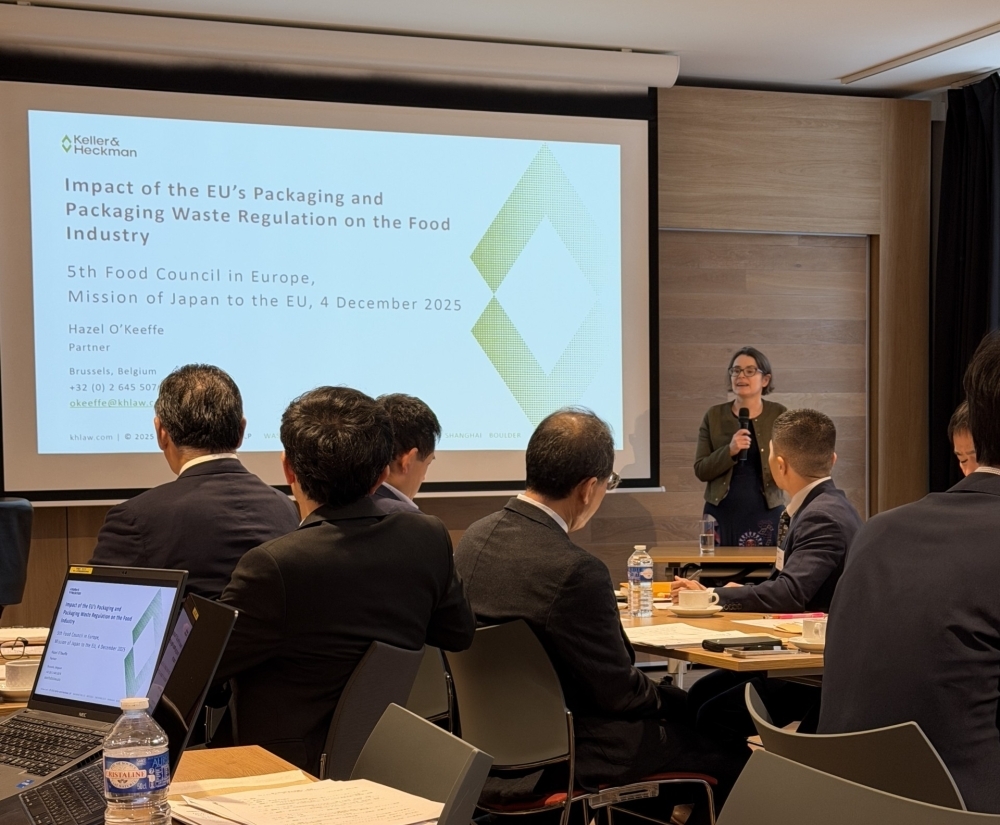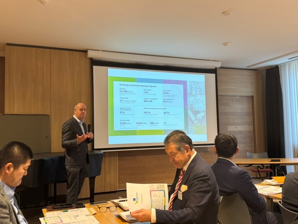 12月4日(木)、欧州進出日系食品メーカー20社が集まり、第5回在欧食品協議会がEU代表部にて行われました。当日は、当地弁護士や飲料・食品団体よりPPWR(包材・包装廃棄材規則)やEUDR(森林減少フリー製品規則)等についての最新動向に関する説明が行われたほか、在欧スーパーマーケットの調達慣行調査に関する説明等も行われ、参加者による活発な意見交換・ネットワーキングが行われました。